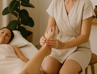 Objectif : Offrir un moment de relaxation profonde par la stimulation des zones réflexes des pieds. Cette pratique aide à relâcher les tensions, améliorer la circulation, apaiser le mental et rétablir l’équilibre du corps.